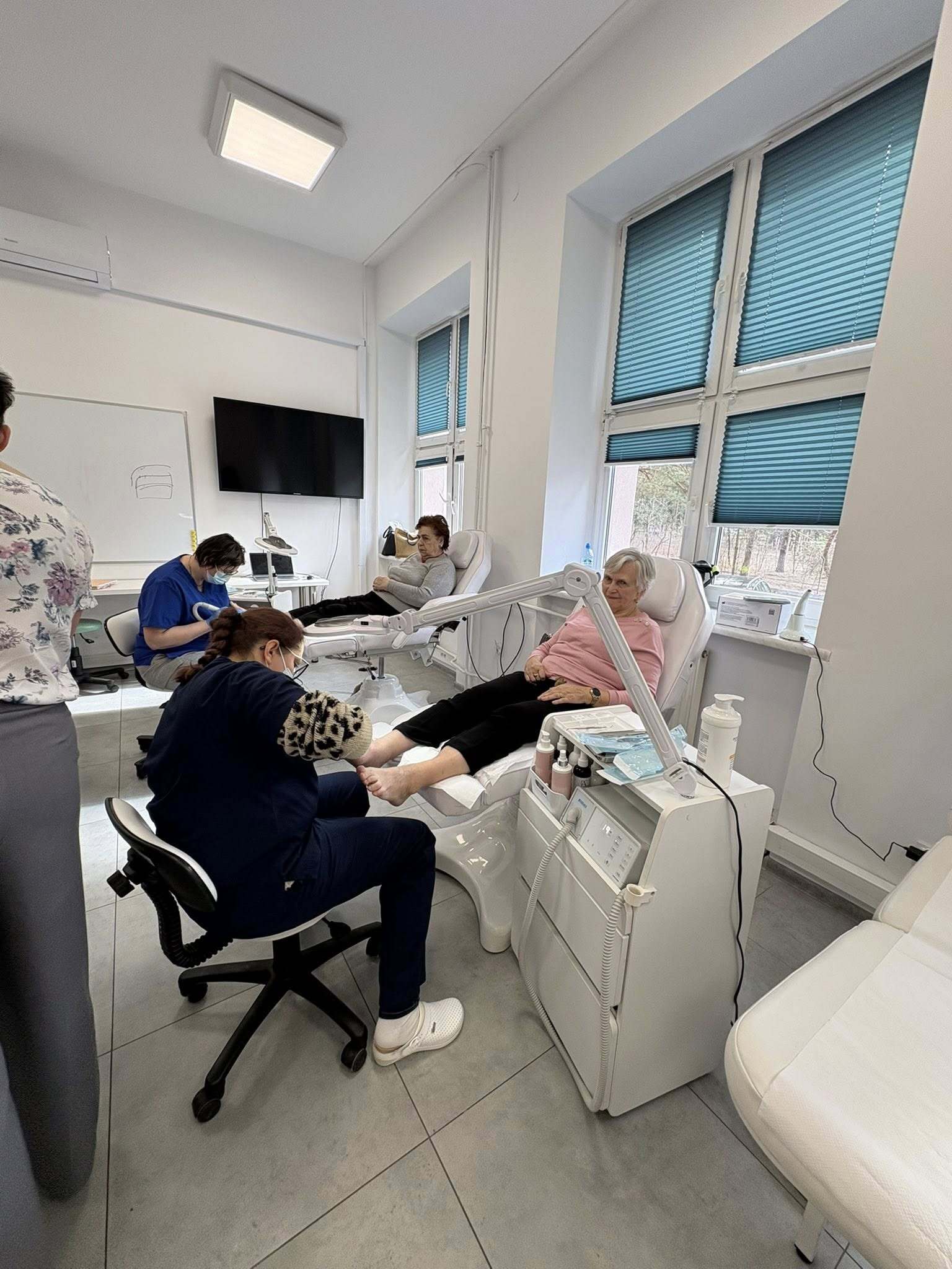 W ramach współpracy z Powiatowym Domem Dziennego Wsparcia dla Seniorów, jak co miesiąc odwiedzili nas Seniorzy, aby skorzystać z zabiegów podologicznych, które przeprowadzają Słuchacze z kierunku Podolog w asyście nauczyciela, p. Anety Miszkurki. Zabiegi są niezwykle ważne dla osób starszych, nie tylko ze względu na częste problemy cukrzycowe. Ograniczenia ruchowe nie zawsze pozwalają na samodzielne dbanie o stopy. Odpowiednia pielęgnacja stóp wpływa na ogólną mobilność seniorów, a także ich dobre samopoczucie.